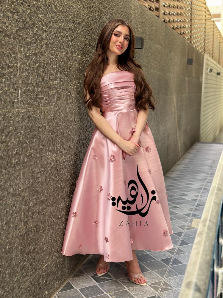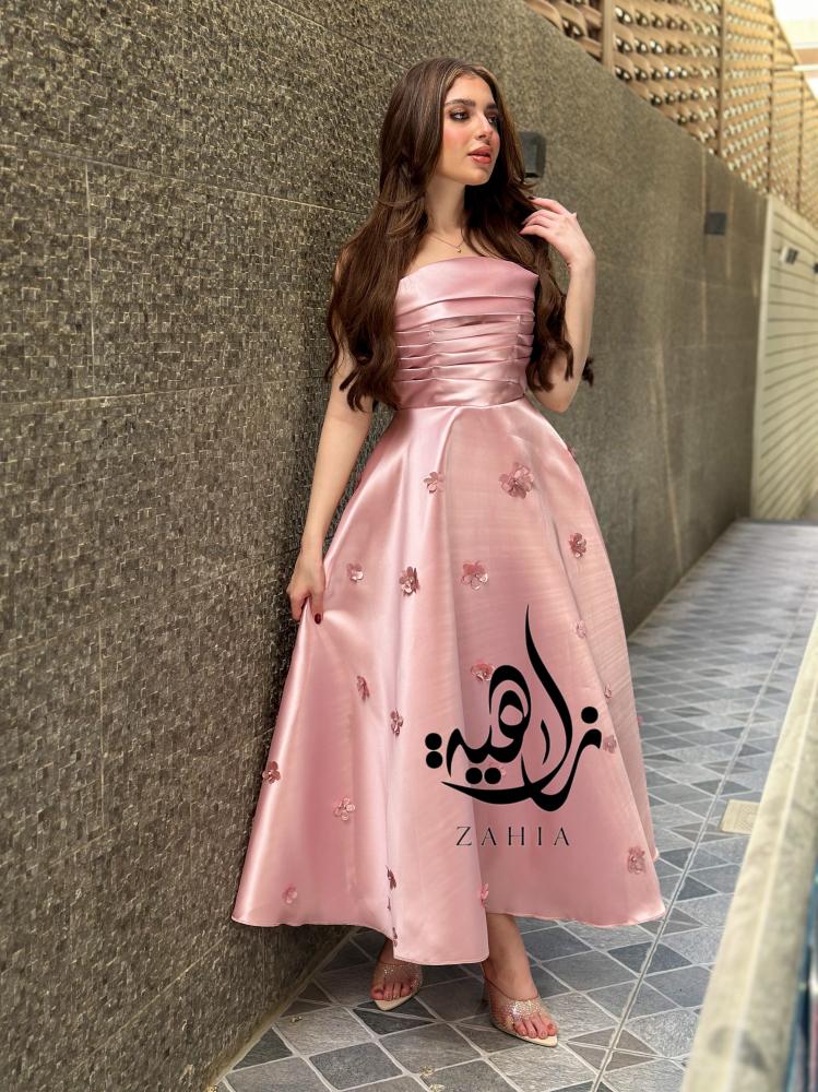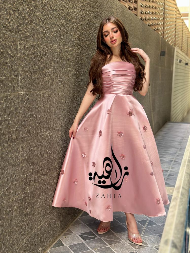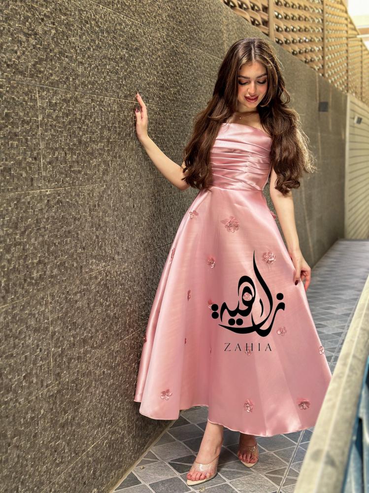 - فستان بناتي منفوش مصنوع من خامة الساتان الناعمة التي تعزز راحة الارتداء واللمسة المخملية