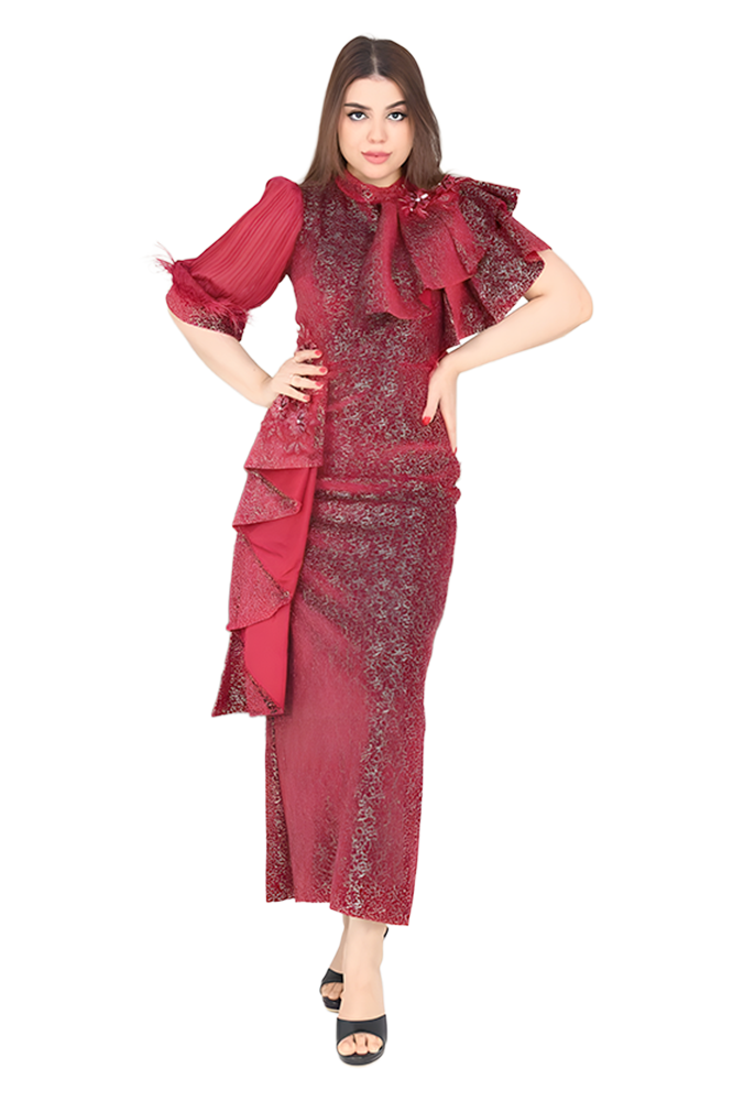 - صُنع الفستان من كريب معرق عالي الجودة مما يجعله متينًا ومريحًا للغاية أثناء الارتداء.